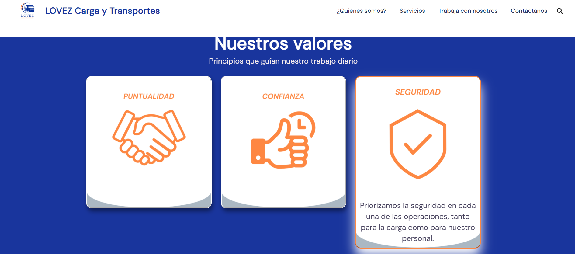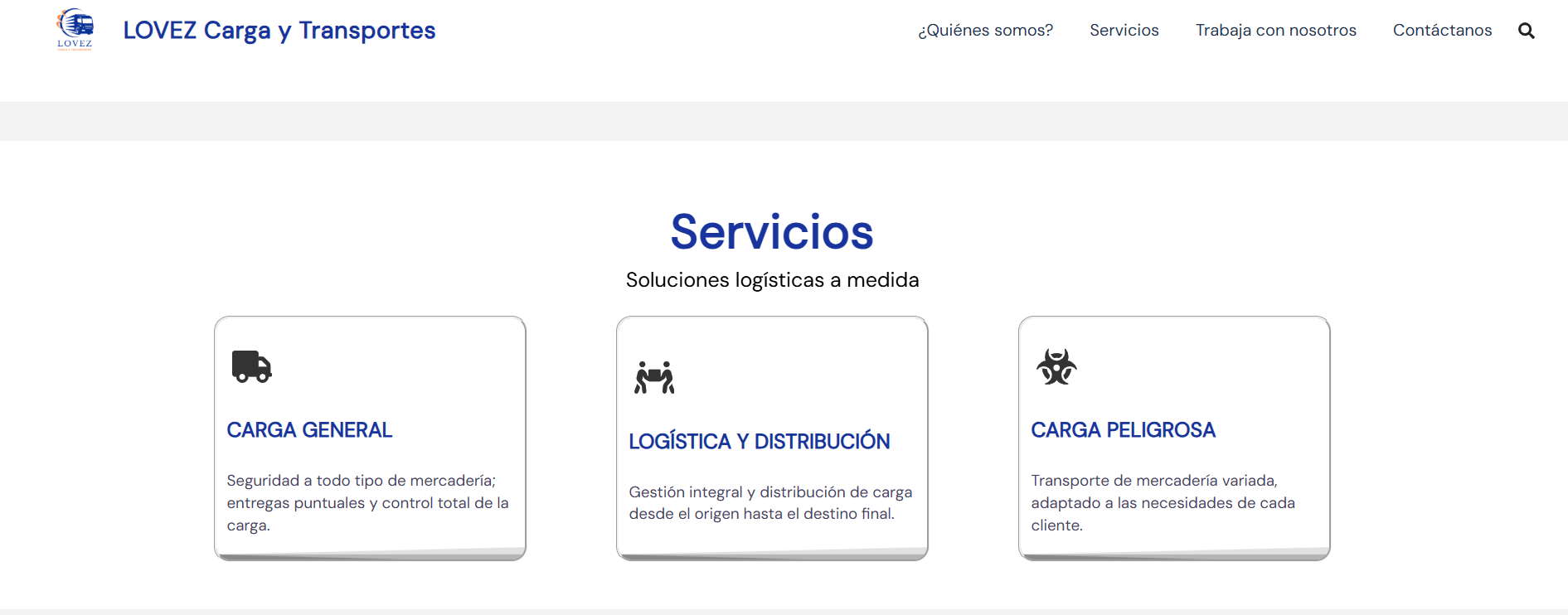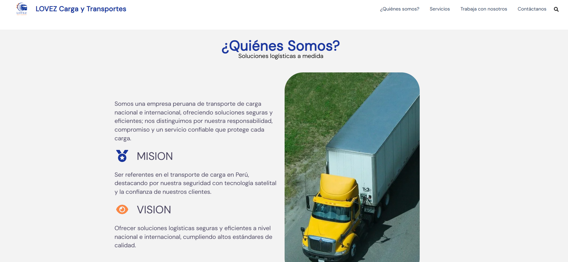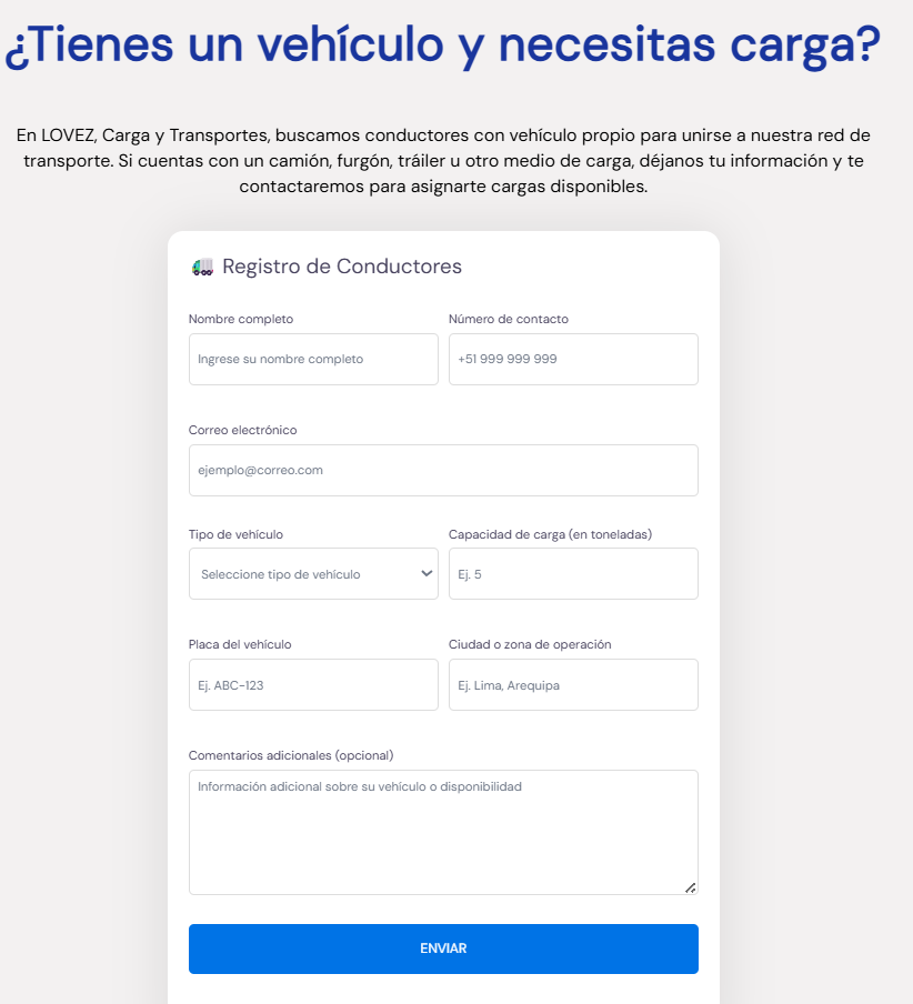 LOVEZ, empresa peruana de transporte y logística, necesitaba una web moderna que transmitiera puntualidad, cobertura y profesionalismo, además de facilitar la recepción de solicitudes de transporte.