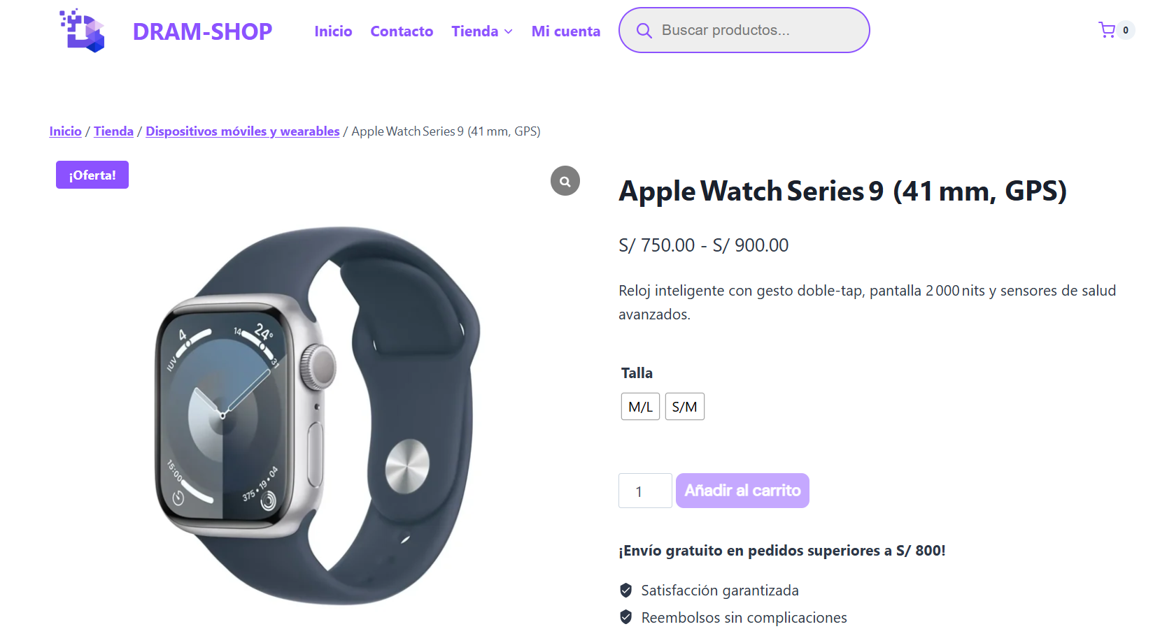 Prototipo funcional de tienda virtual diseñado para demostrar un flujo de venta completo y optimizado, desde la visualización del producto hasta la confirmación de pago.